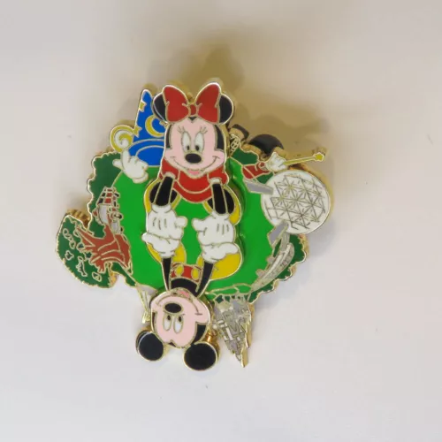 Disney Parks Sning Mickey and Minnie Holding Hands Around 4 Parks 2003 Pin